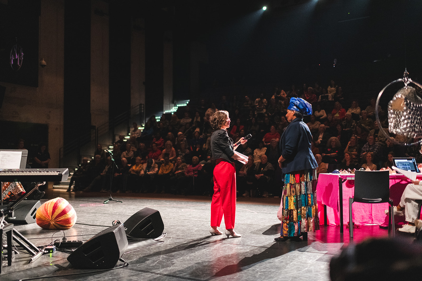 Wat betekent Women Connected voor jou? Women Connected is voor mij als een tweede familie. Er is ruimte voor iedereen, er wordt rekening met je gehouden. Je leert, je groeit en als je optreedt doe je iets voor de maatschappij. Dankzij deze groep heb ik voor het eerst in mijn leven op een groot podium gesproken — iets wat ik me na mijn infarct, waardoor ik een half jaar niet heb kunnen praten, nooit had kunnen voorstellen.